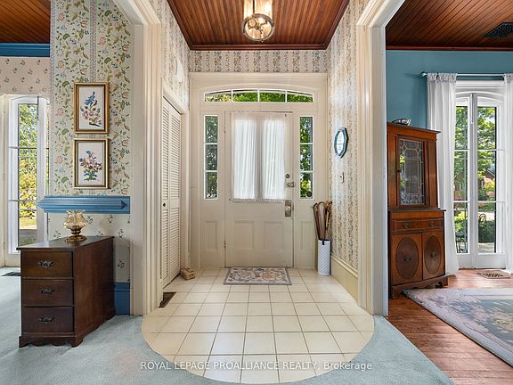 Welcome to 103 Bridge Street, Picton. This charming 5-bedroom, 2-bath home is beautifully situated on Picton Harbour and is everything you imagine a romantic life to be in The County. Enjoy peaceful mornings surrounded by nature, watching sail boats pass by from this secluded property. The home features large windows, french doors, and tall ceilings, offering abundant natural light and timeless character throughout. Lush perennial gardens provide a low-maintenance outdoor setting, the home is generously set back from Bridge Street in a grove of mature trees. Large property (approx. 1.3 Acres) set back from the road. Unique style; 150 years old. Well-maintained by its current owners, this property offers warmth, privacy, and space in an exceptional location. Just minutes from downtown Picton, The Royal Hotel, The Regent Theatre, The Clarmont Club, fine dining, shops, and Picton Memorial Hospital. County living at its finest! Minutes to Sandbanks Provincial Park. **New Kitchen -2015 (new cupboards, quartz counters, appliances, hardwood flooring), New Main Floor Bathroom - 2022 , Library Family Room. Main Floor Bedroom, Bathroom and Laundry Addition in 1986, Large Deck in Backyard overlooking Picton Bay, Separate 2 Car Garage with Carriage Trade Doors is 24 feet ( 100 Amp Power added in 2016), Tongue and Groove Wood Ceilings in many rooms. Pine Floors are underneath the broadloom on the 2nd floor. Cedar Shake portion of roof done in 2015 (overall life expectancy 40 years).