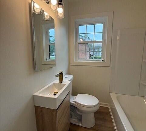 Stylish bathroomCharming front porchCeiling fansLarge kitchenNew vanityBrand new lvp flooringSpacious backyard