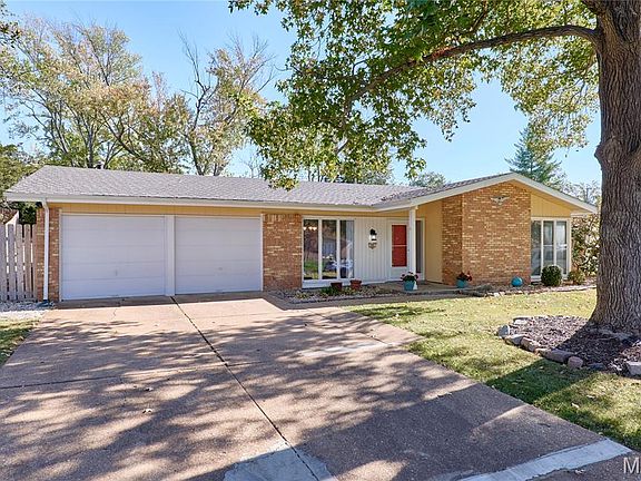 BEAUTIFUL MID CENTURY VIBE! The perks of owning a home with no basement is you get over 2100 square feet of easy living all on one floor! Situated in beautiful Ballwin, Parkway West School District, Shopping, Restaurants and easy access everywhere! This is a true four-bedroom, two full bath home. The large living room shows as an extra bedroom but it can also work great for a sunlit office/flex or play room. Large laundry/mud/bonus room with slider to rear yard has so much potential as well. Updated eat-in kitchen has ample cabinets/pantry area. The primary bedroom has new carpet, an updated bath, walks out to the rear yard, and multiple closets. Light and bright everywhere you turn, neutral decor, usable fenced rear yard, two-car extra deep garage with extra storage and built-in shelves, . This wonderful home sits on a very friendly cul-de-sac!