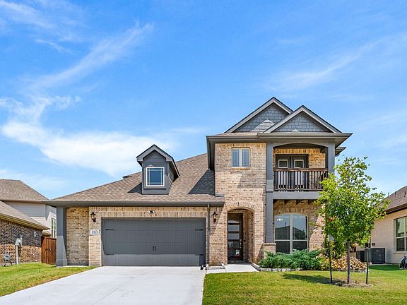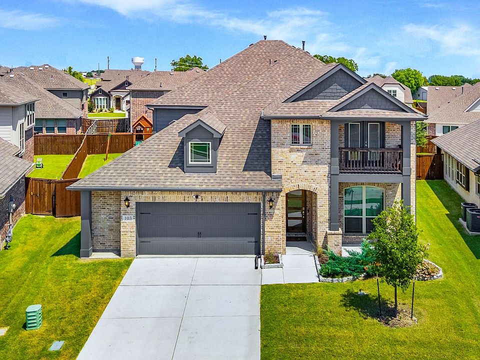 Beautifully upgraded home on a quiet cul-de-sac in top rated Wylie ISD with a huge backyard! This move-in ready residence with 2.5 garage showcases a stylish brick exterior and balcony. Inside, the open-concept design features a deluxe kitchen with Quartz countertops, stainless appliances, gas cooktop, and a large walk-in pantry. A private study and extended patio with gas hookup make it ideal for work and entertaining. Upstairs offers a spacious game room, balcony access, and four bedrooms with a convenient Jack-and-Jill layout. Recent upgrades include a new roof (2025), whole-house water filtration system, kids play-set, and Tesla Level 2 charger. Near top-rated schools, parks, and shopping, this home offers the perfect blend of comfort and style.