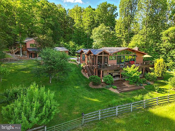 Welcome to Castle Spring a hidden treasure that will take your breath away. As the sun begins its descent, imagine sitting on your deck overlooking 22 acres of pristine pasture and forest, a breathtaking view of Shenandoah National Park, a stocked spring-fed pond, and the stone remains of the original road that connected Little Washington to Culpeper in the early 1800’s. Imagine the people who once used the road daily and picked freely from the pawpaw trees, or stumbled upon a cluster of morels, or collected chestnuts to bring back home to roast. Imagine a stillness and silence so deep and encompassing that only the sounds of bird calls or the rustling of trees can be heard. 103 Castleton Ford Road blends the simplicity and serenity of the past with all the modern comforts and conveniences; it is a dream home come to fruition. The main home has 3 bedrooms with 2.5 bathrooms, fantastic gourmet kitchen with an open space for a dining and living room with over 2,700 finished square feet. The guest house has an artist studio with a powder room, an apartment studio upstairs with full bath and bedroom totaling 1,400 finished square feet , plus a two car garage. That's over 4,100 finished livable square feet of living space. Both buildings are equipped with whole house generators for peace of mind. As soon as you enter the main house you are presented with a choice. If you walk straight through the luxurious foyer with powder room Italian ceramic tiles, you will find yourself on the screened in porch section of the deck, which is the perfect spot for summer morning breakfasts and a second cup of coffee. The other section of the deck is open, enhancing the stunning views that lay before you. Leaning over the deck you will see the asparagus bed, a raised bed vegetable garden protected by wire fencing, blueberry, raspberry and gooseberry bushes, and tart cherry and fig trees bursting with fruit. Back inside, the open concept kitchen, with cherrywood kitchen/pantry cabinets and dramatic sealed granite counters, overlooks the dining and living room, which was very thoughtfully and logically laid out: cook delicious delights grown from your garden, eat the gorgeous meals you make at the dining room table, then move to the living room or go back outside on your deck to relax and take a moment to be thankful for it all. A lovely primary bedroom with a marble-floored full bath with cherry cabinetry and a walk-in closet that will accommodate all your clothing storage. There is an extra room that includes a half bath which could be used for an office or bedroom. Downstairs, the den is the embodiment of comfort and relaxation. Light a fire in the Quadra-Fire wood burning stove and heat your entire house. Curl up on the couch and stream your favorite series on high-speed Starlink internet. Sleep in the spacious guest bedroom if you don’t feel like walking back upstairs. Or better yet, go sit out on the lower level covered porch and listen to the rain beating down above you as it collects into the under-deck drainage system. Entering the studio, the true scope of the spaces comes to life. It is complete with a half bath, giant stainless steel work sink, and tons of space for any creative endeavor you want to do. As you make your way up the new entry steps and stand on the newly installed deck overlooking the mountains, you will find a charming apartment with everything you could need. The kitchen, recently completely renovated, includes a washer/dryer, gas range stove, dishwasher, fridge, granite countertops, and ample cupboard space. The dining room and living room are connected and the windows allow for beautiful natural light all day long not to mention that magnificent view. Along with a full bathroom, also recently renovated, and cozy bedroom, this apartment would be the perfect fit for guests to stay the night or even more long term. Experience the pinnacle of 103 Castleton Road and make Castle Spring your new home!