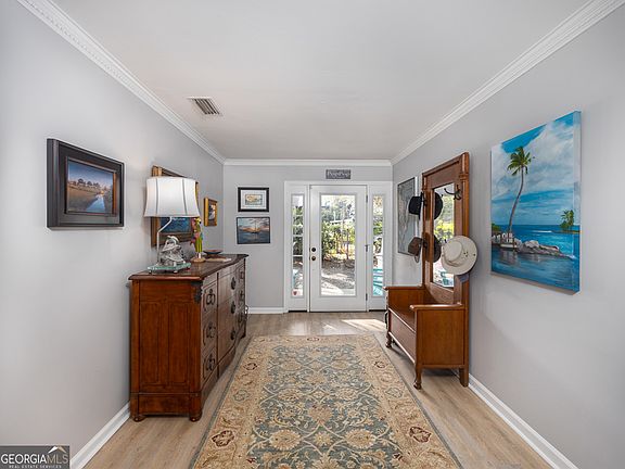 Nestled in the heart of charming St Simons Island, this delightful home is situated in the convenient Mid South area, and is close to the beach, shopping, dining, and entertainment. As you step inside, you are greeted by a spacious open floor plan & abundant natural light. The living area boasts a cozy fireplace and opens to the large sunroom. Multiple French doors lead you to the outdoor spaces that feature a side patio area, with room for a pool, fenced backyard, open air pavilion perfect for an outdoor kitchen and entertaining or simply relaxing on "island time"; This home features 4 bedrooms, 3 bathrooms, and an additional flex room off the foyer that can be used as extra sleeping space, an office, or an exercise room. Being sold furnished with the exception of artwork. There is no HOA and this floor plan would be ideal for an investment property. A must-see property that offers casual living at its finest, in a prime location! ____________________________________________________________________________________________________________