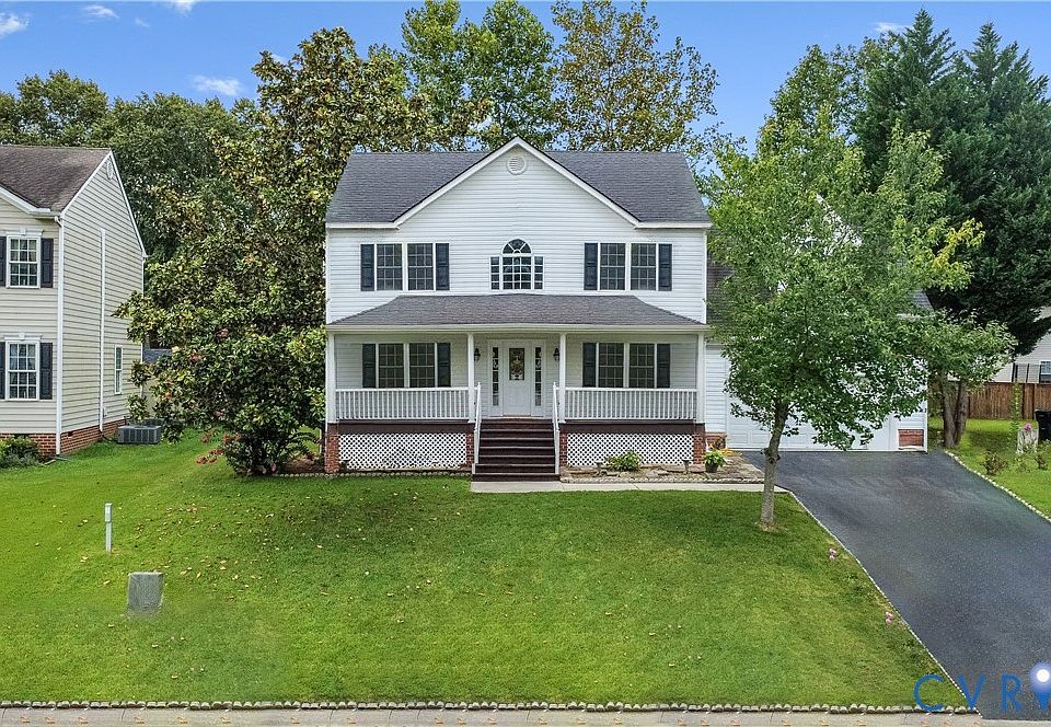 A true 4 bedroom non-HOA home is now available in the desirable Swift Creek Lake Reservoir area of Colonial Heights! This gorgeous traditional house features an attached 2-car garage, a full sized country porch, a memorable 2-story foyer separating the spacious family room with cozy gas fireplace from the other generous sized living room, an eat-in kitchen with a separate formal dining room, a huge back deck for grilling and entertaining, and upstairs are all the large bedrooms and full baths. The primary suite has a walk-in closet and true en-suite bath with a separate soaker tub and shower, and dual vanities. The other 3 bedrooms share a hall bath. In addition to the garage this home also comes with an outdoor storage shed. This well maintained house and nearly quarter acre lot is conveniently located near schools, shopping, and I-95! It's only 15 minutes from Fort Gregg!