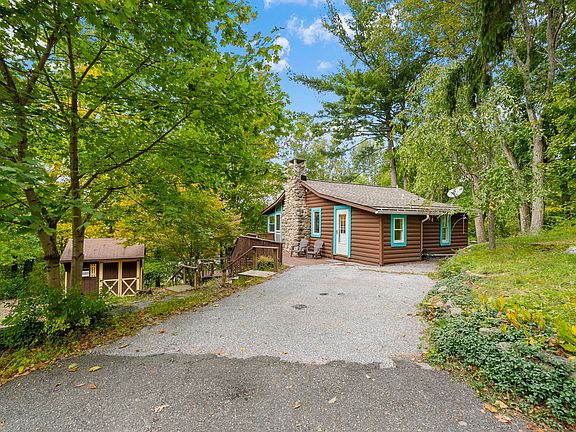 Enjoy nature, nearby lake access, and the privacy of this charming, well-kept cottage. Deceptively spacious, the home features 2 bedrooms, an eat-in kitchen with a cozy breakfast nook, and a spacious living room with a fireplace. An all-season den filled with natural light provides the perfect spot to relax year-round. The ground level offers even more flexibility with an additional room, kitchenette, full bathroom, and abundant storage. Recent updates include a newer roof, newer flooring, updated windows, and more. The property also provides parking for up to 3 cars, a shed for extra storage, and a washer and dryer in the utility area. Set on a wooded lot, this private retreat comes with optional lake privileges at Lake Lenape perfect for those who value both comfort and nature.