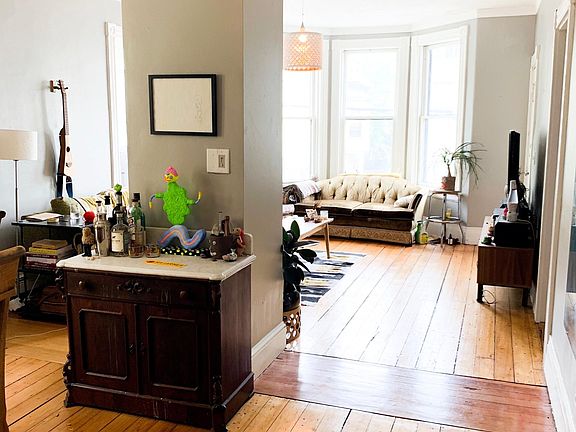 This large two-bedroom, one-bathroom apartment screams charming with its high ceilings, grand open double parlor space (living and dining), and large bow windows in the front. Recently re-done kitchen featuring subway tile backsplash, butcher block countertops, and open shelving. Both bedrooms are great-sized and boast plenty of closet space. Ceramic tiling in bathroom floor and shower space. There is parking for one car off-street! Owner pays water/sewer and electricity. Tenant responsible for gas. Owner pays water/sewer and electric. Tenant responsible for gas.
