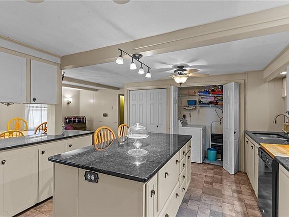 Welcome to 103 Clews Street in Pawtucket — a spacious home made for gathering, celebrating, and everyday comfort. Spanning over 3,000 sq. ft. and set on two lots, this property offers space to live, relax, and entertain. The oversized kitchen (over 450 sq. ft.) is the true heart of the home, with endless counter space, storage, and a dining area that seats 10 — perfect for family dinners and holidays. The first floor also includes a cozy family room, laundry, half bath, and a flexible bedroom or home office. Upstairs, the primary suite spans 250 sq. ft. and features two large closets and a private bath with a stand-alone shower. Three additional spacious bedrooms and a full bath complete the upper level. Enjoy mornings in the bright sunroom overlooking the yard or summers in the fenced-in saltwater pool area with a brand-new liner — great for backyard gatherings. The finished lower level with a bar adds extra living space and has hosted many celebrations. A two-car garage with storage above and solar panels for energy efficiency add convenience and value. While this home could use a few cosmetic updates, it’s been lovingly maintained and offers incredible potential. Located near Flora Curtis Elementary, shopping, dining, and highway access, this rare Pawtucket gem blends space, flexibility, and comfort — ready for its next chapter.