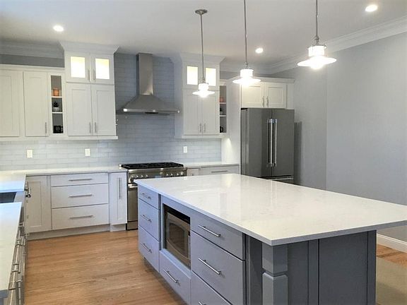 Enticing newly constructed home is energy efficient w/a Home Energy Rating of 49! Stunning kitchen with over-sized island that provides excellent storage capacity. Enjoy fresh air on the main level deck or the patio underneath. A complete suite hosts guests, teens or au pair in the lower level. Mudroom with custom cabinetry including wine racks offers convenience and organization. The master suite is a sumptuous and spacious retreat.Two other upstairs bedrooms offer generous proportions. Lovely views - even including from the laundry room! Two car garage, three zone heat & A/C, hardwood, tile & laminate flooring. Engineered quartz and granite counter/vanity tops. Decorative and recessed and under counter lighting. Thermador appliances. Split staircase. Welcoming foyer. 9' ceilings with rich crown moulding. Covered front porch. Lush landscaping w/underground sprinkler system. Walk to schools, recreation, shops, post office, commuter transportation. Floor Plans attached in documents