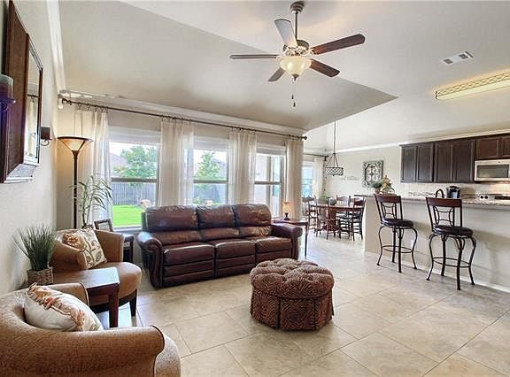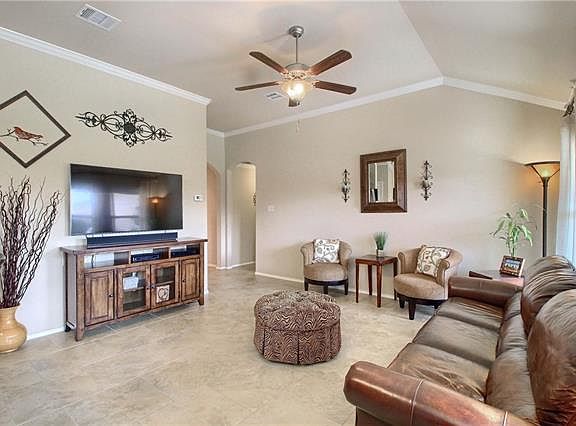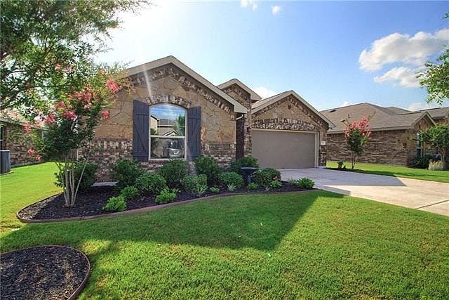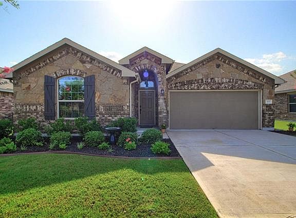 Immaculate 1 story home in coveted Hutto Highlands. Notable curb appeal w/stone & brick exterior & beautifully landscaped yard. Enjoy the open concept living w/kitchen over looking family room great for entertaining. Kitchen boasts granite counter tops, breakfast bar, SS appliances, pantry, tile back splash & kitchen/Dining combo w/ access to the covered back porch & extended patio. Additional features include master bath w/ dual vanities, garden tub, separate tile surround shower & large walk-in closet.