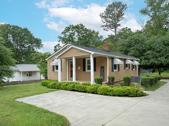 This adorable home is a blend of classic character and modern updates. It sits on a .60+ acre lot and has 2 bedrooms and 1 bath. The beautiful original hardwood flooring can be found in most of the home with laminate flooring added in the kitchen and vinyl flooring in the bathroom. It has a combination living room and dining room. It also has an updated kitchen with some soft close drawers/cabinets and stainless-steel appliances – refrigerator, smooth-top stove, built-in microwave, and dishwasher with one set of cabinets with pull out drawers for a pantry area. The washer and dryer located in the kitchen area also convey. The oversized walk-in shower adds a luxurious touch to the bath. You can rock on the front porch or grill and entertain friends on the back covered porch and spacious backyard. There is also an outside storage building with electricity. There is a long driveway lined with beautiful trees and an extra parking area, along with a fenced-in area in the backyard, and plenty of acreage to enjoy. Whether you are searching for your first home, a downsize opportunity, or a peaceful retreat, this home and acreage have all the charm and comfort you need. It is less than a mile from downtown Laurens. Grass was cut and it has been professionally cleaned so it is move-in ready! If square footage is important to buyer, buyer must verify. This lot is large enough so it could be subdivided and that portion sold off– we believe the set-back lines for the lot would need to be 20 ft across the front, 10 ft on both sides and 30 ft in the rear and the lot would need a new tax map number. More information can be obtained from the Planning and Building Department, City of Laurens.