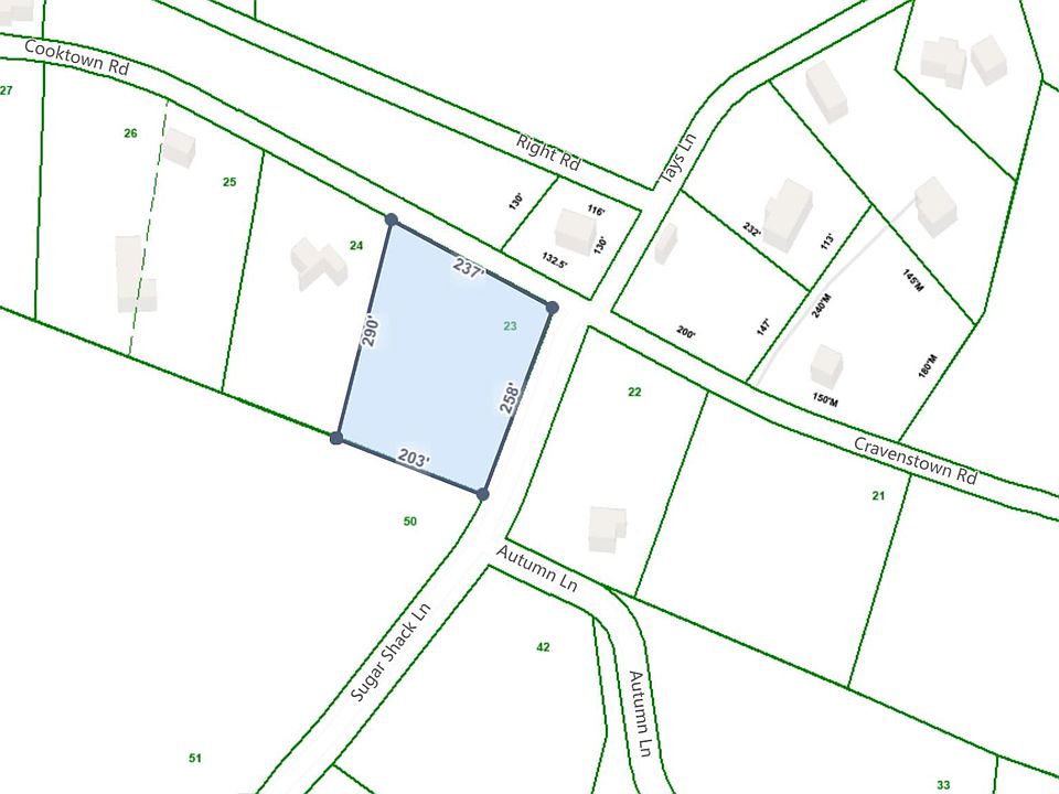 No restrictions. Owner terms on an up and coming mountain get-a-way. 20% down with payments on balance of with 7% interest rate. Mostly level. Walking distance to historic store. Partial building remains that could be renovated.