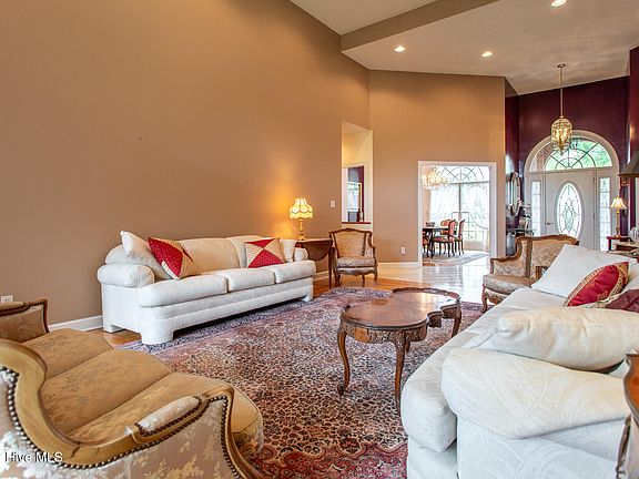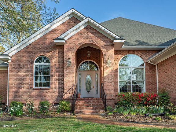 This is a gorgeous brick, 3-bedroom, 4 full-bathroom home in The Albemarle Plantation Community, located on the pristine Albemarle Sound. Key features include, open floor plan with 14 ft. ceilings, formal dining room with built-in cabinets, a study-office combo and formal living room. The large kitchen, includes high-end appliances, with a prep sink, creates a functional and inviting space for cooking and meal preparation. A generous master bedroom and bathroom suite offering a soaking tub, walk-in shower and dual sinks. The family room features a beautiful gas log fireplace and view of the Albemarle Sound, creating a warm atmosphere. An ample two-car garage makes for work or hobby space. Overall, this charming home offers a comfortable living space with appealing features, a wonderful waterfront community with a range of amenities and activities making it a comfortable and luxurious retreat home! This community offers endless opportunities to enjoy life on the water. Their stunning amenities boast one of the largest private full-service, deep water marinas on the east coast and a private waterfront world-class golf course designed by Dan Maples. With tennis courts, fitness facility, community center, community gardens, and several dog parks, residents always have something to look forward too.