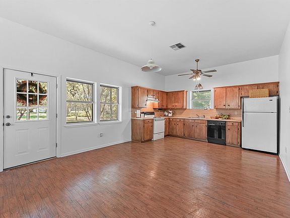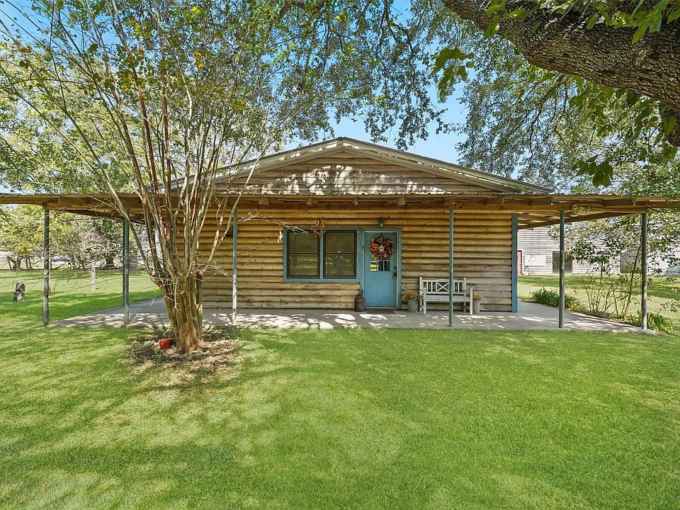 Beautiful quaint country cottage on half an acre offers 2-bedroom 1-bath. This home has been freshly painted, new vinyl plank floors in the kitchen, living room and walk in pantry. Included with washer, dryer and refrigerator and utility room in the house. This home offers wraparound porch with a covered carport and beautiful Mayhaw trees throughout the property.