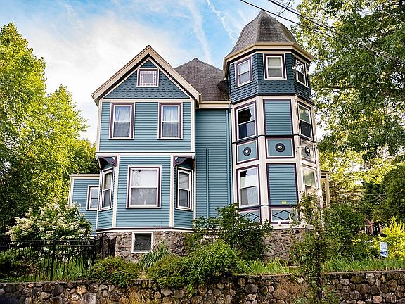 Located in the heart of suburban Melrose, this spacious nine-room Victorian with wraparound porch exudes pride in ownership. This home boasts stained glass windows that brighten the grand foyer, pocket doors between the living room and the ornate fireplace of the dining room, a large eat-in kitchen, and hardwood floors throughout. Perfect for entertaining! The second floor offers four bedrooms and a full bath. The third floor hosts a fabulous master bedroom suite with an exceptional master bath, walk-in closet, and sitting room! A full basement allows for extra storage. The backyard offers a private patio area! Enjoy the ease of access to major highways, public transportation, restaurants and shopping! A timeless value!