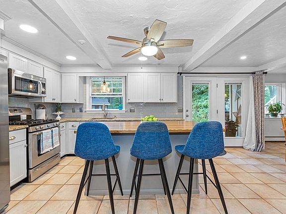 - Features: Beamed Ceilings, Flooring - Stone/Ceramic Tile, Dining Area, Pantry, Countertops - Stone/Granite/Solid, Kitchen Island, Breakfast Bar / Nook, Deck - Exterior, Exterior Access, Open Floorplan, Recessed Lighting, Slider, Stainless Steel Appliances, Gas Stove