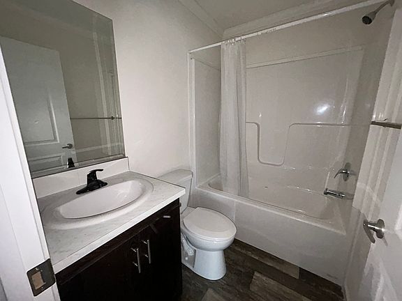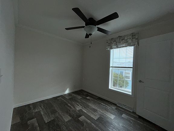 Discover contemporary comfort in this beautifully updated, move-in-ready manufactured home at 103 Dawn Field, featuring a bright open-concept layout with stylish wood-look plank flooring throughout. The heart of the home is a modern kitchen boasting rich, dark cabinetry, a center island, and seamless flow into the main living areas. The residence includes three spacious bedrooms, a large primary suite with an attached full bath and walk-in closet, plus a second full bathroom and a dedicated laundry room. Outside, you'll enjoy a charming covered front porch and the benefits of a premium manufactured home community offering exclusive access to fantastic amenities, including a clubhouse, swimming pool, fitness center, playground, and basketball court, making this a perfect blend of low-maintenance living and active community benefits.
