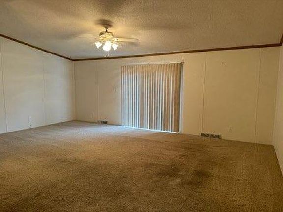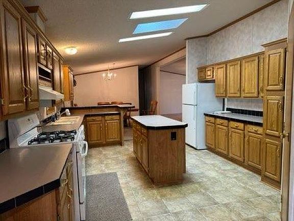 Insulated 6 inch walls, thermal pain windows, vaulted ceiling, and skylights. The open concept invites you into the dining area, living room and kitchen. The kitchen hosts a breakfast bar, plenty of cupboards, and counterspace with an island that includes electric. In the master bedroom you have the walk-in lighted closet, ensuite which includes a large vanity, medicine cabinet, garden tub and walk-in shower The 2+ stall garage has a ramp, storage shelves and chest freezer that stay. Updates include roof, deck with ramp, a/c, furnace, hall bathroom walk-in shower, kitchen flooring, bath flooring, carpet and painted throughout, ramp with shelving in garage, and water heater in 2013. Gas stove in 2023. Insulated Anderson front door. Lot rent is $400.00 a month per person and $10.00 each additional person. Taxes on the mobile home a year are $126.00. Garage taxes are $201.30 a year. Buyers must be approved by Knollwood Estates Mobile Home park management. Left on Tanglewood, right on Knollwood, turns into Deer Point.