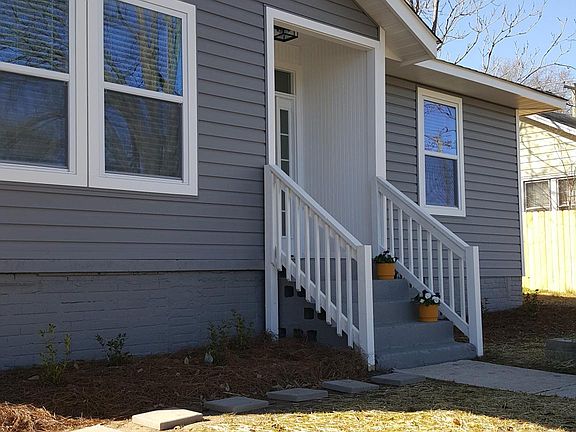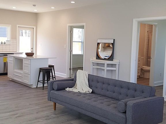 Welcome home to this charming, 2-bedroom, 1.5-bathroom residence located near the vibrant FUSE district and Downtown Gastonia. Discover the charm of the gourmet kitchen boasting custom cabinets, an inviting island with seating, stainless steel appliances, stunning white quartz countertops, a stylish tile backsplash, and rustic reclaimed wood shelves. Enjoy the abundance of natural light through the large picture window and full glass door overlooking the newly constructed deck, perfect for entertaining or unwinding after a day's work. This cozy home features brand new windows, a rain glass front door with transom and side lights, contemporary paint colors complementing 6-inch baseboards, timeless subway tile, and elegant 6-panel doors. With upgraded HVAC, electrical, and plumbing systems, along with luxury vinyl plank floors, a new water heater, and a vapor barrier, this property ensures worry-free living and easy maintenance.