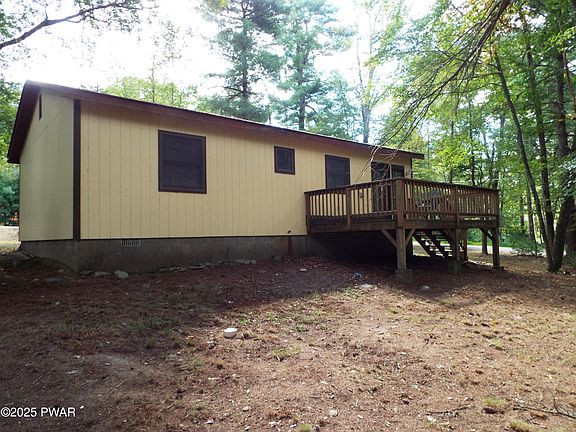 Come and check out this tidy, updated ranch. There is a new kitchen, new bath, all new laminate flooring and has been freshly painted. It is a corner property with a circular driveway in an amenity filled community in the Pocono Mountains of Northeast PA. There are 2 bedrooms, 1 tiled bathroom, a living room, and a kitchen/dining area. A large deck is in the backyard, with a lovely wooded setting.