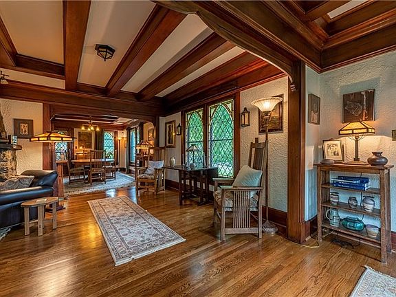Offers will be presented 9/27 at 5 pm. OMG! Hurry to see this Arts & Crafts Masterpiece in Deerhurst Park. This magnificent home is an architectural wonder. The custom ceiling beams, crown moldings, dramatic detailed woodwork, outstanding hardwood floors and stained glass windows throughout this entire home bring warmth, comfort and a luxurious feel to every room. This home has been given the white glove treatment and is ready to welcome it's new owner. The open concept entrance foyer, living room with natural stone fireplace, and dining room provide space for many activities. The updated kitchen has cherry cabinets and leads to an outdoor patio, the huge master bedroom features a lovely sitting area and upper outdoor patio, there are 2 more bedroom on the 2nd floor and a full bath with walk-in shower, another 2 bedrooms and full bath are on the 3rd floor. PLUS! Replacement slate roof 2006! 2 car garage, lovely yard, 2009 furnace & a/c, 2020 HWT & 2018 sump pump. It's one of a kind! 2021-09-30