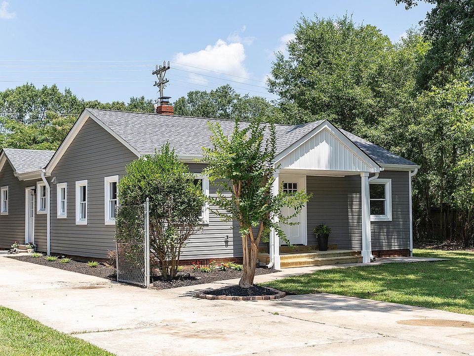 This charming and fully remodeled ranch home is nestled on a large 0.28-acre lot. The detached carport and extra-long driveway give you plenty of space for parking. The home features new plumbing, electrical, insulation, HVAC, duct work, siding, roof and more! As you enter, you're greeted by laminate floors, smooth ceilings, recessed lighting, and a spacious open floor plan with abundant natural light. The updated kitchen boasts recessed lighting, stainless steel appliances, granite countertops, white cabinetry, a large island with a breakfast bar, and ample cabinet and counter space. Refrigerator to convey, with an acceptable offer and as part of the sales contract. The spacious master bedroom features a large en suite bathroom with dual vanities, a separate water closet, and a walk-in shower. The rest of the bedrooms are also spacious in size. The large yard will be perfect for grilling out and entertaining. You'll also find a 2000+ sq ft workshop, with electricity (on a separate meter), and a separate entrance from E Warehouse Ct. Workshop is As-Is. Conveniently located near shopping, dining, and Downtown Greenville. Come see your new home, today!