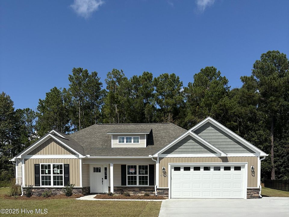 PRE-SALE NO SHOWINGS The one-story Chatham is a classic to the JC Jackson's Carolina Series. With three bedrooms and two bathrooms this split bedroom home features an impressive entry that showcases your dining room and study just inside the front door, then leads you to the expansive great room open to the breakfast area, and kitchen with center eat at island. With tall cathedral ceilings and windows across the back of the home that provide views of the backyard, this home was built for entertaining! The owner's bedroom is separate from the secondary bedrooms with easy access to the garage through the conveniently located laundry room. The unique layout of this floor plan allows for a partially covered porch to come included in the base model! These are built to suit in Eastern NC brought to you by the sought after JC Jackson Homes! Additional options for this plan may include a natural gas fireplace, luxury owner's bath, a ''drop zone'' in the laundry room, and additional windows throughout the home to provide more natural light. Additional luxury choices include a powder room or even a fourth bedroom with third full guest bathroom, extended rear covered or screened porch, a Carolina room, laundry cabinets and more!