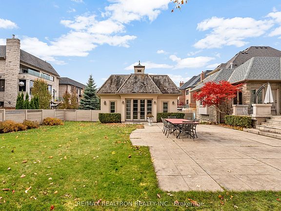 Welcome to this exceptional custom-built bungalow nestled on one of Richmond Hill's most sought-after streets, just steps from Bayview & 16th. Designed with timeless elegance and superior craftsmanship, this home showcases soaring ceilings throughout, expansive principal rooms, and an ideal layout for both everyday living and entertaining.The grand foyer opens to an elegant living room featuring tall windows that flood the space with natural light and highlight the home's detailed millwork and crown moulding. The formal dining room is enhanced by a fireplace and tray ceiling, creating a warm and refined atmosphere. The gourmet kitchen offers a large centre island, custom cabinetry, built-in appliances, and a breakfast area overlooking the backyard-flowing seamlessly into the inviting family room with a gas fireplace. The luxurious primary suite features a double-sided fireplace, his & her walk-in closets, and a spa-like 5-piece ensuite with heated floors, Jacuzzi, and a private sitting area. The finished lower level is an entertainer's dream with a designer bar, wine cellar, custom lounge, private gym, steam room, large laundry room, and ample storage. Step outside to your private backyard retreat featuring a custom cabana with a 3-piece bath, bar area, wine fridge, dishwasher, and fireplace, perfect for hosting or relaxing under the stars. All-stone exterior, professionally finished stone patio, sprinkler system, and mature landscaping complete this truly remarkable residence, ideally located near top schools, shopping, dining, GO Station, and Highways 404 & 407.