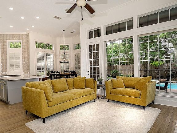 Beautifully remodeled George Weaver custom home in Alden Bridge! Some of the many updates include all new flooring, fresh interior paint, complete kitchen remodel with all new appliances, new tankless water heater and furnace, remodeled front porch, and all new LED lighting throughout. You'll notice impressive ceiling heights and huge windows upon entry. Open concept island kitchen with quartz counters, Zellige tile backsplash and spacious pantry overlooks the sunny breakfast room and den with remodeled fireplace; elegant formal dining and study with built-ins; flex room (could be 5th bedroom) and owner's retreat down; 3 bedrooms, media, game room, and bonus room up; oversized 3 car garage; fenced yard features a covered patio, beautiful pool and spa with brand new heater.