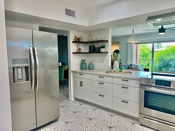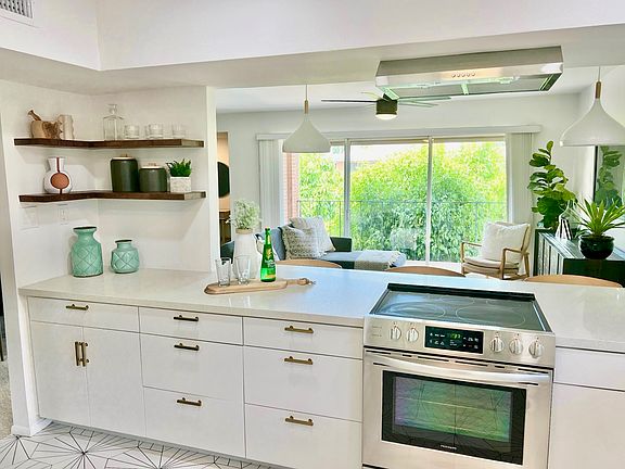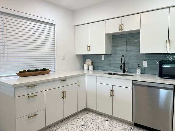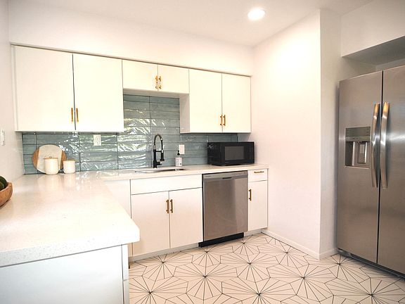Welcome to the Palm Lane Gardens! This spacious unfurnished two-bedroom mid century charmer contains stainless steel appliances, quartz countertops, in-unit laundry, and detached single car garage! Walk out onto the front deck and enjoy the view of the community pool, or lounge on the primary bedroom's back patio.