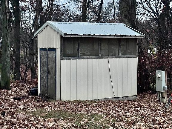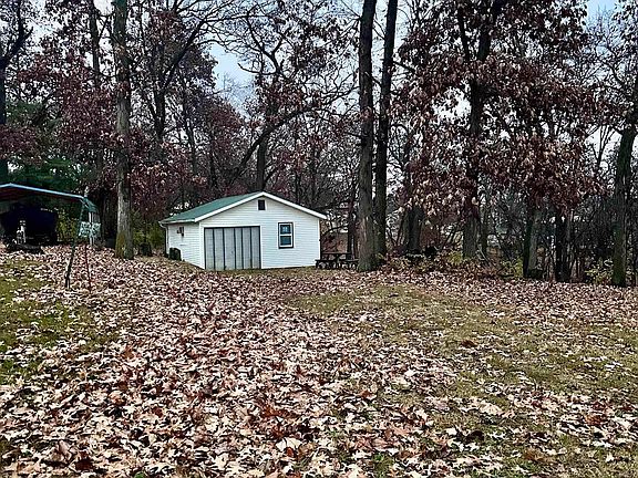 Over a half of an acre of Beautiful timber with a quaint home offered for sale at Lake Ponderosa, Montezuma, IA. The home is a single, open-concept living space with a kitchenette, living room area, and sleeping area with a full bathroom. What once was a garage door, has since had a permanent screen built over it, when opened, you feel like you're sitting in nature! Included with the property is your own 10 ft access just down the hill and a storage shed. Call today for a tour of the property