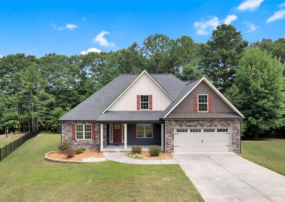 Welcome to this meticulously crafted craftsman home, completed in 2015 and recently refreshed with a brand-new exterior and screened-in back deck freshly painted for relaxed outdoor living. Nestled on a beautifully landscaped yard, the front porch invites you into a warm and inviting atmosphere. As you enter through the stylish front door, you're greeted by a striking light fixture that illuminates the foyer. Adjacent to it is a spacious dining room capable of accommodating gatherings of up to 12 guests. Also nearby, is a large laundry room that offers practicality and ample storage. The main level boasts an open floor plan designed for modern living, featuring granite countertops, stainless steel appliances, a walk-in pantry, breakfast nook, and an abundance of cabinets that cater to culinary enthusiasts. A breakfast bar seamlessly connects the kitchen to the family room, where a stunning rock fireplace serves as the centerpiece, complemented by high ceilings and French doors leading to the screened-in back porch. The oversized primary bedroom suite is a haven of comfort, featuring tray ceilings, an expansive closet, and a luxurious primary bathroom with a tiled shower, soaking tub, and double vanity. The remaining four bedrooms offer versatility and flexibility, making them ideal for accommodating guests, setting up a home office, or creating a playroom for children. Each bedroom is thoughtfully designed to provide comfort and functionality, ensuring that every member of the family has their own space to call their own. Convenience is enhanced with a double car garage equipped with an opener, ensuring easy access and secure parking. Outside, the private backyard offers a tranquil retreat, perfect for enjoying nature or entertaining guests. The Stonecrest neighborhood consists of underground utilities, lighted sidewalks, swimming pool, and a playground. This craftsman home blends modern amenities with timeless design, offering both elegance and functionality in every detail, making it a perfect place to call home. Stonecrest is known for its scenic landscapes and upscale living, hence, why this property is perfect for convenience to shopping, dining, and entertainment, and easy access to major transportation routes. Make an appointment today so that you don't miss your chance on this amazing home!
