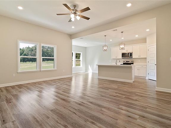 Welcome to the Maybell floor plan, a home designed for both comfort and functionality. This 3 bedroom, 2 bath layout features 10 ft ceilings and luxury vinyl plank flooring in the common areas and carpet in the bedrooms. The open-concept design creates an airy flow between the family room, kitchen, and dining area — perfect for everyday living and entertaining.