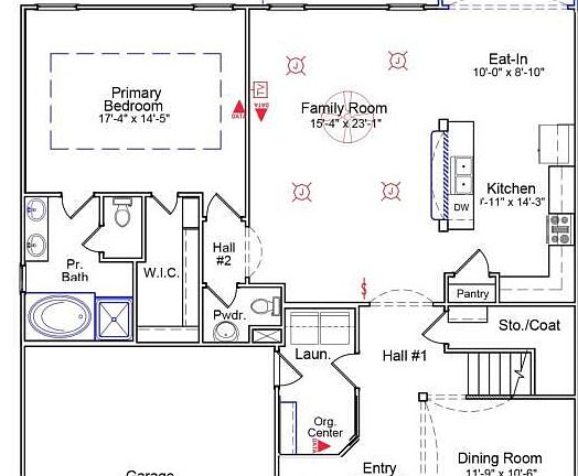 Our two-story Victor plan features five bedrooms and two-and-one-half bathrooms. This home features a formal dining room and an open great room, a gourmet kitchen with quartz countertops, and an eat-in area. An organizational space/laundry room is located off the garage. A sunroom completes the main level living area. The primary bedroom is located on the main floor and features a private bath and a large walk-in closet. Four secondary bedrooms and a large bonus room are located upstairs, giving plenty of space for everyone.