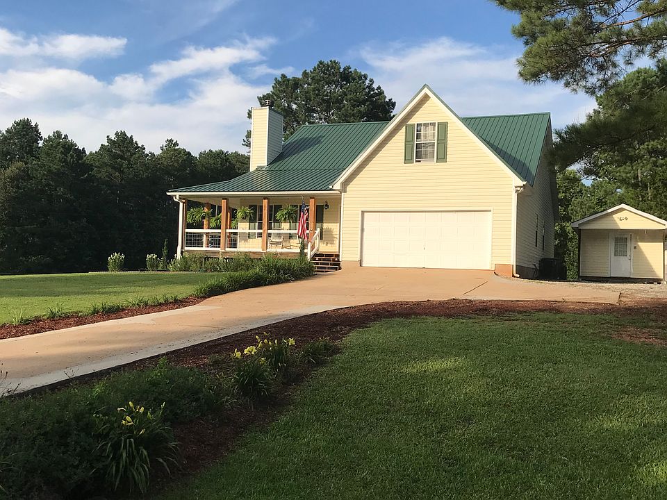 * SOLD Beautiful Home located in Butts County, GA just 3 miles from I-75 off of Hwy 16 one acre corner lot 3 bedrooms/2 full baths 1 large bonus room 2052 sq ft living space wrap around porch 2 car garage vaulted ceiling tile flooring granite countertops new stainless steel appliances newly renovated 2017 open plan wood burning fireplace A/C Heat Pump 2014 metal roof 2011 separate office building 2011 storage building