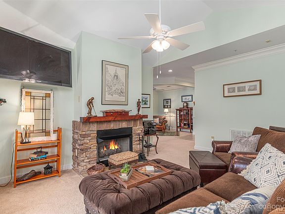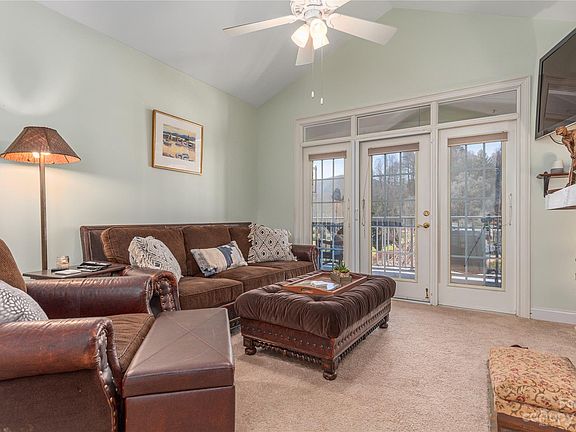 This 2-bedroom, 2-bath condo at Maggie Valley Club offers a cozy living space with modern amenities.This 3rd floor unit can be accessed by elevator or stairs. The unit features split bedrooms, full bathrooms, granite countertops, bidet toilets, and a gas fireplace. The kitchen boasts 2023 SS appliances and granite countertops. The primary bedroom has access to a covered retractable screen balcony with mountain views and view of the golf course 8th hole, it includes a full bath with a large tile shower, double vanity, and walk-in closet.The HVAC is four years old, and the tankless hot water heater is from 2023. All doors leading to the outside have retractable screen doors to enjoy the mountain air. The Maggie Valley Club offers golf memberships & social/sport memberships including tennis, an outdoor pool, club house and fitness center.