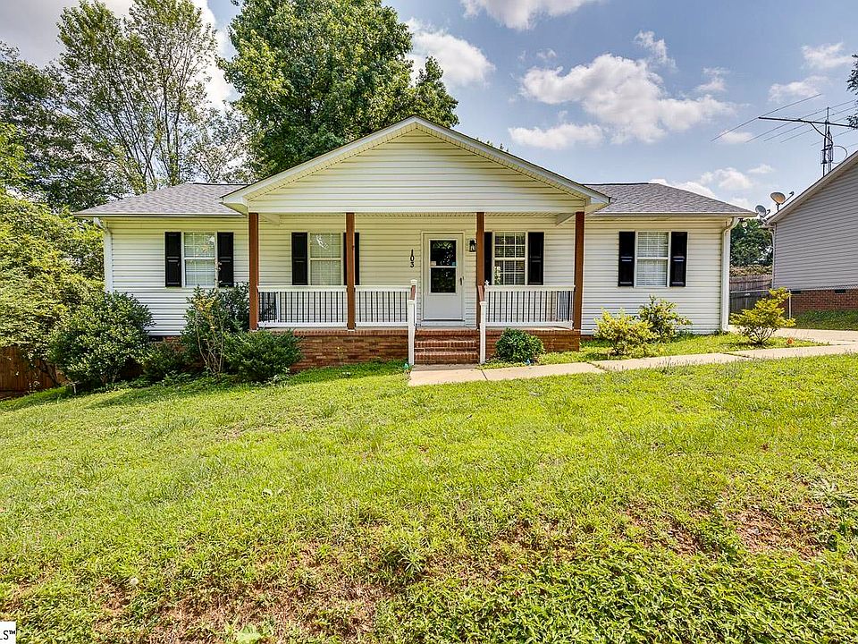 BACK ON THE MARKET THROUGH NO FAULT OF THE SELLER! Fully remodeled ranch style home just minutes from popular downtown Greer. 103 Golf Street features one level living with an open floor plan, fully fenced backyard and large deck. The large front porch welcomes you into the sunny living room that opens to the fully renovated eat in kitchen. Here you will find granite countertops, stainless steel appliances and easy access to the driveway through the “friends and family” entrance as well as access to the spacious deck. Off the kitchen is the walk in laundry room. Down the hall there are two bedrooms that share a hall bath as well as the primary suite with walk in closet with built ins and attached bath with a fabulous tile and glass surround shower. Outside you will find a large deck for grilling and dining and a spacious fenced yard with room for a playset, flower beds and more. There is a large outbuilding that will convey with the home that can be used as additional storage, a workshop or even a she/he shed! Located just minutes from downtown Greer plus easy access to medical facilities and major roadways, this move in ready home is ready and waiting for you!