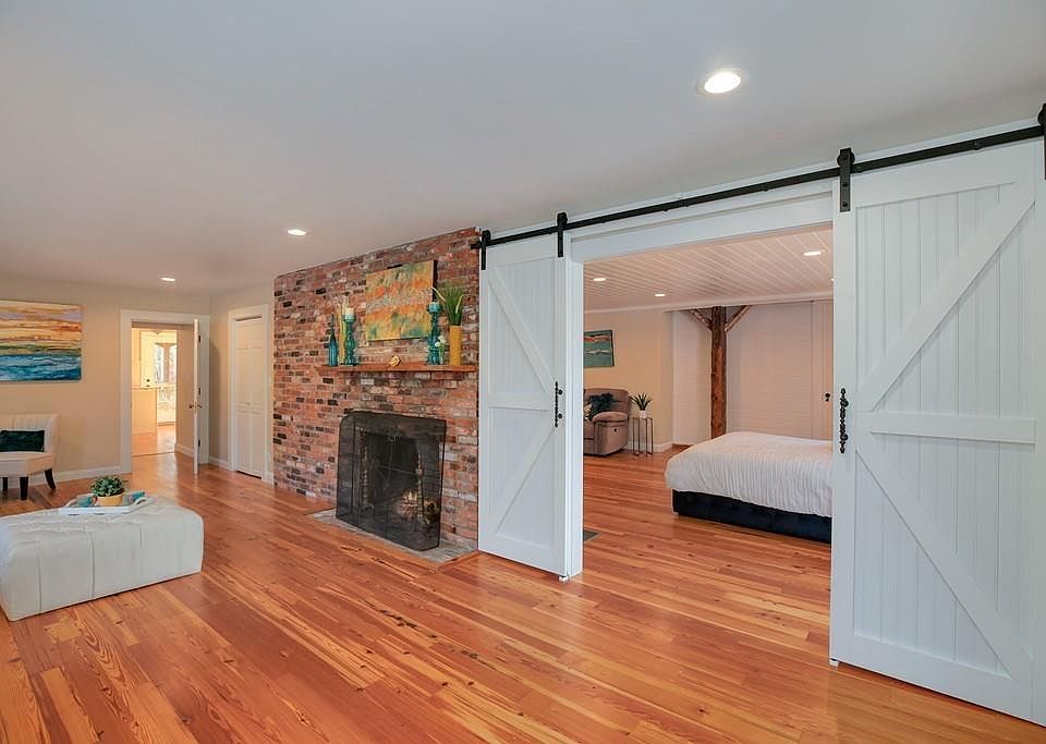 This charming colonial, newly renovated with attention to period details and modern amenities, features reclaimed heart pine flooring and antique glass. The main level welcomes with a foyer/mudroom and large living area with fireplace. Next to the living area is a sitting room/ possible bedroom with closet and fireplace and a fully renovated bath and access to the large, unfinished multi-purpose space with endless possibilities (gym, family room, etc.) The beautifully updated kitchen delights with granite countertops and stainless appliances and opens to a dining area with picture window, additional cabinetry and deck access. The spacious 2nd level has a huge family room with antique windows and open area with cathedral ceiling and stained glass windows. There are also 2 bedrooms, including a master with modern shower and antique vanity and an office with fireplace and built-ins. New washer/dryer and septic (2016). Additional 3.8 acre parcel included in sale. Close to Routes 139 & 53.