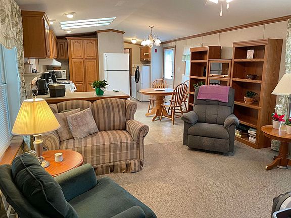 Location...location...location.. This home is beautiful both inside and out. Located on a corner lot in desirable Hayes Mobile Home Park, and minutes from downtown Exeter to enjoy its unique shops and wonderful restaurants. This home consists of 2 bedrooms and 1 and 1/2 baths which are on opposite ends for maximum privacy. The spacious eat in, fully appliance kitchen is open to the living room for easy entertaining. Cathedral ceilings and skylights give you an open, spacious feel. The tastefully done and fully enclosed 3 season porch adds extra living space to relax and enjoy yourself. This well maintained, level lot has plenty of gardening options and a shed for you to store all of your tools. Monthly park fee is $495.00. Park approval is required.