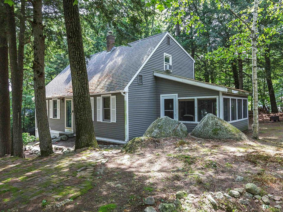 Ready for immediate occupancy! Nestled in a charming small town where community meets nature, this full dormered Cape offers the best of both worlds, a peaceful wooded setting in a desirable neighborhood with easy access to Concord, Manchester, and nearby Pat’s Peak for year-round recreation. Set back from the road on a .47-acre lot, the home enjoys a private feel with a paved driveway and ample parking. The low-maintenance yard is a natural haven, with beautiful accent boulders, perfect for play, quiet reflection or fairy gardens! Step inside to a warm tile entryway and cherry hardwood floors that flow through the spacious front-to-back living room. The kitchen features a granite island, tile flooring, and opens to a lovely three-season screened porch, with interchangeable panels, perfect for morning coffee or evening relaxation. A full bath completes the first floor. Upstairs, three bedrooms with new vinyl flooring, including a front to back primary bedroom with generous closet space. A second full bath features serves the upper level. The basement offers a walk out ll w/ finished room ideal for a family room, and yet still offers an abundance of storage. Brand new energy efficient boiler installed! The convenience of city services. Come experience life in the one and only Henniker!