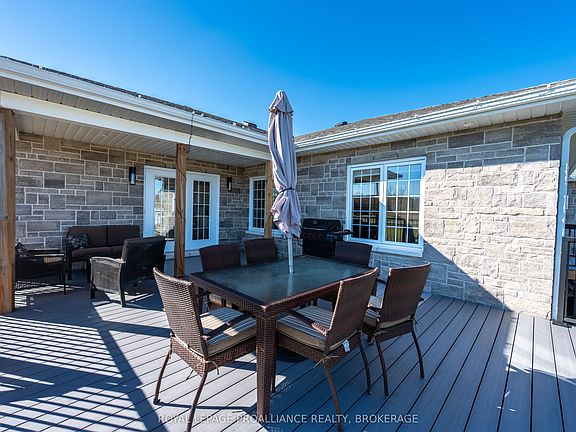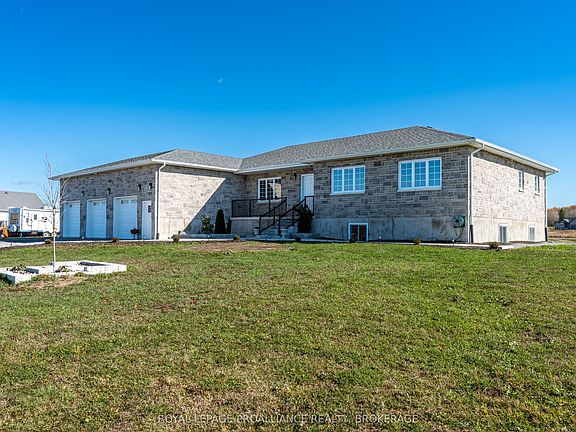 Set on a picturesque corner lot just shy of 3 acres, this recently constructed stone-exterior bungalow in Gibraltar Estates embodies exceptional craftsmanship & pride of ownership throughout. Thoughtfully designed & custom built, the home showcases elegant & modern finishes providing utmost comfort in a serene rural surrounding. Enjoy views of Gibraltar Bay & meadows beyond, where nature creates a truly peaceful setting only minutes from Kingston's East-End amenities & the 401. The bright main floor layout offers 4 generously sized bedrooms & 3 baths, which includes the spacious primary suite with walk-in closet & 4pc ensuite. At the heart of the home you'll find the gorgeous, fully equipped kitchen boasting glimmering quartz countertops & ample cabinetry, with easy access to the large living room featuring a propane fireplace & custom mantle, sheltered under a stylish tray ceiling. Separate entrances to the partially finished basement provides exciting potential for a future in-law suite. Develop this nearly 2,500 additional square feet of bonus living space to your liking, adding future value to your investment. Let's not forget about the massive attached triple car garage affording you all the storage you could ask for. All around a great opportunity to own a stunning, move-in-ready property that perfectly balances sophistication, space, & country charm.