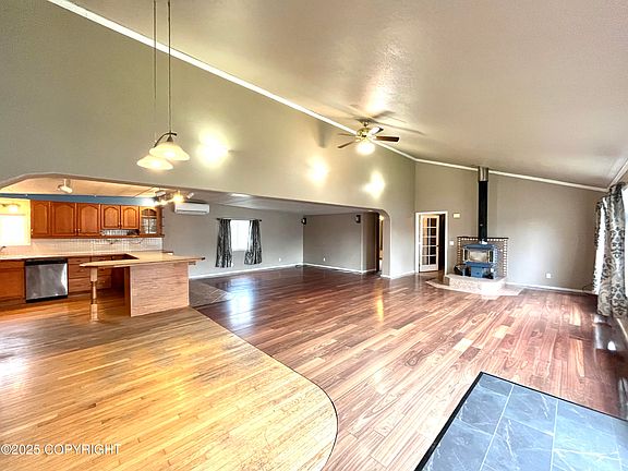 Discover comfortable and spacious living just 2 miles from downtown in this 2,700 sq ft manufactured home. Featuring 4 bedrooms and 2 full bathrooms, this single-story residence offers an open-concept layout perfect for modern living. Enjoy year-round comfort with a heat pump, in-floor heating, wood stove, and energy-efficient double-pane vinyl windows. The property includes an 800 sq ftgarage/carport, a large woodshed, and a fenced yard ideal for storage and outdoor enjoyment. Finished with durable vinyl siding, this home combines convenience, functionality, and style in one inviting package.