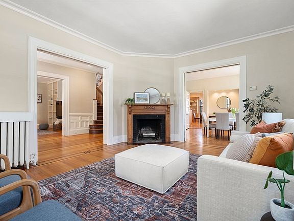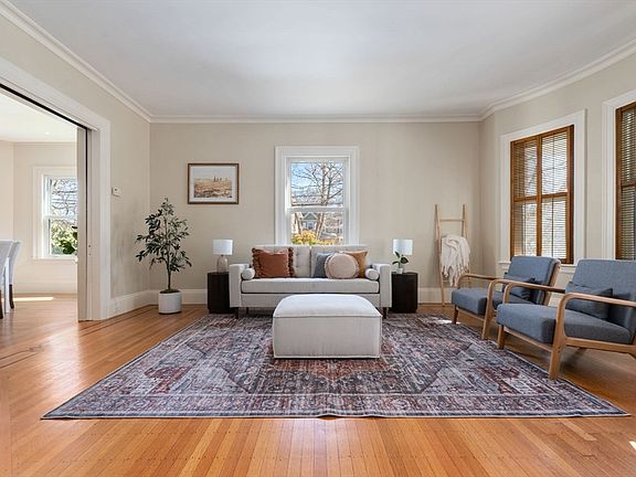Lightfilled 1892 Victorian in meticulous condition offering 12 rooms, 5 plus bedrooms and 3-1/2 bathrooms. Beautifully sited on a corner lot in Hunnewell Hill, a lovely front porch welcomes you to this meticulously maintained residence with an abundance of detail including pocket doors, inlaid floors, tall ceilings and multiple bay windows. Inside, the 1st floor offers wonderful ambiance with gracious spaces including a large foyer, bright and airy fire-placed living and dining rooms, updated kitchen with breakfast nook, family room, home office/bedroom and half bath.The wide staircase leads to a cozy landing and second floor with four bedrooms, study and two full baths. A private entrance to the third floor, perfect for an-pair or in-law with cathedral ceiling great room, bedroom, bath and kitchenette. Lush perennial gardens, updated systems and two car detached garage. Minutes to Cambridge, Mass Turnpike and transportation make this the perfect urban suburban oasis!