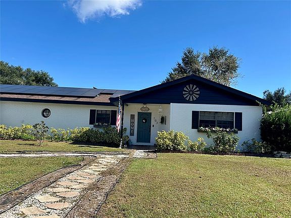 Get ready to be impressed by the spacious charm of this beautiful home, perfectly situated in a well-established Wauchula neighborhood. Step through the front door and take in the open floor plan, offering clear sightlines across the living room, dining area, family room, and kitchen—all enhanced by gleaming new laminate flooring. The kitchen is designed for both function and style, featuring a built-in oven, cooktop, breakfast bar, and a convenient island—perfect for cooking and entertaining. Two-tone cabinets with black hardware, wood countertops, ceiling display shelves, and modern track lighting add a stylish, contemporary touch. The luxurious master suite serves as a private retreat, showcasing a spacious bedroom with an accent wall, a large closet, and a generous 20x10 sitting area highlighted by a unique round window and arched doorway. The suite also includes its own vanity with sink and a bathroom with a walk-in shower—your personal sanctuary. A cozy, moody family room features wood-look vinyl walls and a bar area, ideal for relaxing or hosting guests. Three sets of French doors open to the backyard, flooding the interior with natural light and leading to a covered patio—perfect for gatherings and outdoor entertaining. Additional updates include a new A/C unit installed in 2019, a roof only 8 years old, and energy-efficient solar panels that help lower utility costs. The backyard once featured an in-ground pool, which has since been professionally filled in by a licensed local contractor.