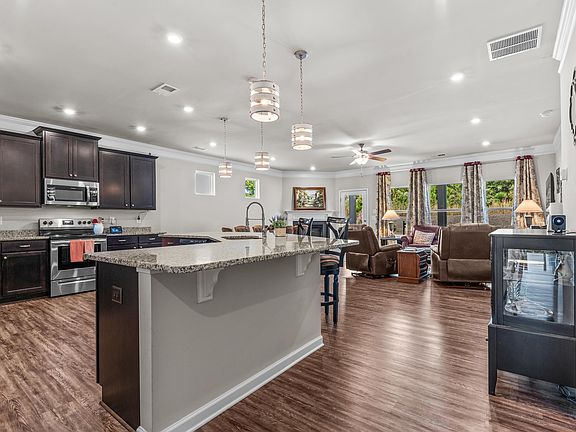 Welcome to the Campbell plan, the same floor plan as the model home in the desirable Phoenix Crossing community. This exquisite 1,830 square foot home boasts an open concept design, featuring a spacious granite island in the kitchen, complete with 42-inch shaker-style cabinets, crown molding, and stainless steel appliances. The kitchen is further enhanced by flush mount LED and pendant lighting. The great room is anchored by a cozy electric fireplace, perfect for relaxation. Throughout all common areas, enjoy the elegance of Luxury Vinyl Plank flooring, complemented by chair rail and shadowbox detail in the foyer. The covered porch comes equipped with a fan/light, providing the ideal spot for outdoor enjoyment. The large owner's suite is a retreat in itself, boasting a tray ceiling and ample closet space. The en-suite primary bathroom features a beautifully tiled shower with a glass door and transom windows, a dual cultured marble vanity with a drawer stack, under mount porcelain sinks, and a sizable linen closet. Two additional bedrooms offer generous closet space, while the secondary bathroom includes a tub/shower combination, cultured marble vanity, and a transom window for natural light. The home is sold furnished, except for items detailed in the Seller Disclosure. Residents of Phoenix Crossing enjoy access to community amenities, including a private pool and playground. Conveniently situated on a private cul-de-sac between Lake Oconee and Lake Sinclair, this home offers both tranquility and accessibility. Schedule your private tour today.