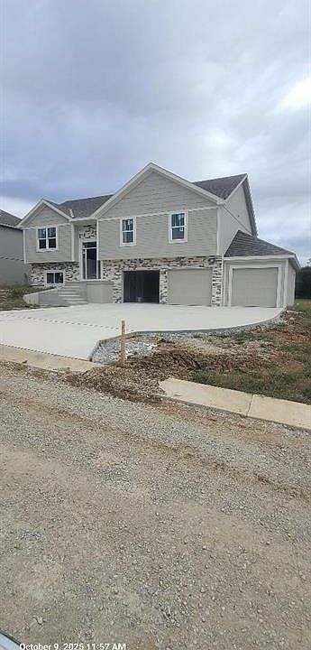 Stunning Custom Home with Modern Features and Inviting Spaces Welcome to your dream home! This exquisite property showcases an open floor plan, ideal for both entertaining and everyday living. The elegant kitchen boasts pristine white granite countertops, custom cabinets, and stainless steel appliances, all seamlessly flowing into the spacious living area centered around a beautiful fireplace. Step outside to discover a covered deck complete with a fan and light, perfect for enjoying serene views of the adjacent pasture. The rich feel of this home is accentuated by LVP throughout and vaulted ceilings enhancing the sense of space and light. The laundry room features stylish tile, while two generously-sized guest bedrooms offer plush carpeting, ceiling fans, and trey ceilings, creating a comfortable retreat for family and friends. The guest bath is tastefully designed, highlighting a tiled tub and a marble vanity that exudes luxury. Retreat to the master bedroom, a good-sized haven with carpet, a ceiling fan, and sophisticated trey ceilings. The walk-in master closet provides ample storage, while the en-suite master bath features elegant tile flooring, a double vanity with sleek black faucets, and a spacious tiled shower. The lower level invites you to enjoy a large fourth bedroom, complete with carpeting and a ceiling fan, alongside a substantial family room perfect for movie nights. The additional full bath boasts a tiled floor and a shower for convenience. Completing this remarkable home is an oversized three-car garage, providing plenty of space for vehicles and storage. The front of the house is adorned with beautiful stone, adding to the curb appeal with shutters to boost the look. Don’t miss the opportunity to make this luxurious yet inviting home your own! SIMULATED PHOTO'S NEW ONES COMING SOON - THE POND IS STOCKED FOR FISHING