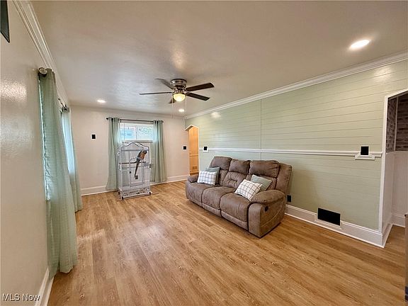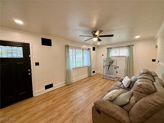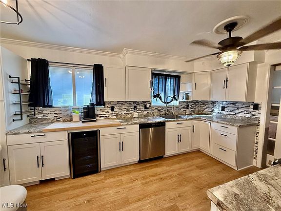 Finished basementStone ranchModern updatesUpdated flooringGleaming new kitchenCentral air conditioningCovered rear patio