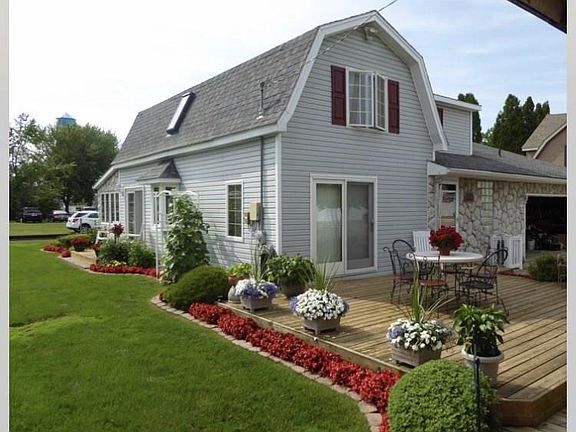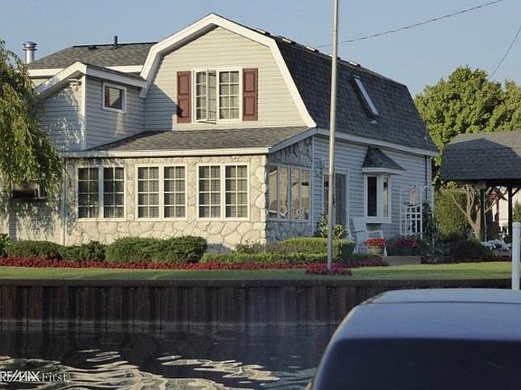 Beautiful well maintained waterfront home, located on two canals, with quick access to the North Channel. This fine home features a large deck, a covered boat well with a Algonac Hoist, in ground sprinkler system fed from the canal. This updated home has an oak staircase leading to the two bedrooms upstairs, a sitting area between the bedrooms and a large bathroom with a whirlpool tub and a separate tiled shower. On the main floor is a full bath, spacious office, a large laundry and utility room, Also, currently being used as a media room is an available 3rd. Bedroom. The front entry hall leads into expansive open area large kitchen with new granite counter tops, bay window over looking the main canal and a dining area w/patio doors. There is a wide living space taken up the rest of the living area. All this plus a deep 2.5 car garage has an additional garage door on the canal side for easy access to lawn mower and gardening tools. Home warranty included.