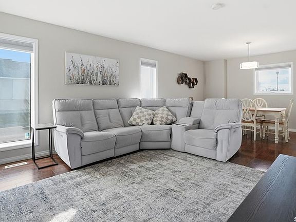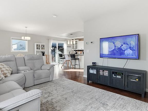 Perfect fully developed 1560 sq.ft. 2 storey home in Hampton Village. The main floor is open concept with a great layout, large island, stainless appliances, walk thru pantry from the kitchen to garage entrance, perfect for unloading groceries. There is main floor laundry, 2 piece bath and central air. Patio doors off the kitchen to a large deck and fully developed yard with gazebo, garden box, shed and more. The second level has 3 good sized bedrooms with a 4 piece ensuite and a 4 piece bathroom for the kids. The basement is developed with a games area, family area, 2 piece bath and tons of storage space. Double attached garage and just a short walk to school, shopping, parks and walking paths.