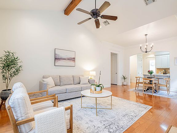 Discover the epitome of comfort in this fully furnished 2 bed, 2 bath residence, centrally located near numerous restaurants and shops. Step into luxury with wood floors adorning the living room, while the kitchen and bathrooms feature elegant tile. Unwind in the carpeted bedrooms under vaulted ceilings, complemented by fresh paint and stylish window treatments. The open floor plan flows seamlessly, offering an inviting atmosphere with an office nook for added convenience. Your private laundry room includes a washer and dryer, and all appliances are ready for your immediate enjoyment.