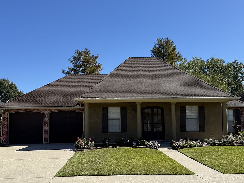 Charming lakeside home in Youngsville. Welcome home to this inviting, beautifully-maintained residence nestled in sought-after Southlake Plantation With a tranquil lakeside setting and convenient access to all of Lafayette's most popular amenities, this home offers an ideal blend of comfort, style and location. Spacious split floor plan with generous living areas perfect for entertaining. Lovely kitchen featuring modern appliances, ample cabinet space, and a view towards the living room with its cozy fireplace. Well-appointed main suite with private bath and two large closets. Additional bedrooms are roomy and share a full bath. Get work done in your nice office with brick accents, bookcases and french doors. Large rear patio and the backyard has a deck overlooking the lake enjoy your morning coffee or evening breeze lakeside.There is even an outdoor fireplace. The community pool and recreation area will provide hours of summer fun.