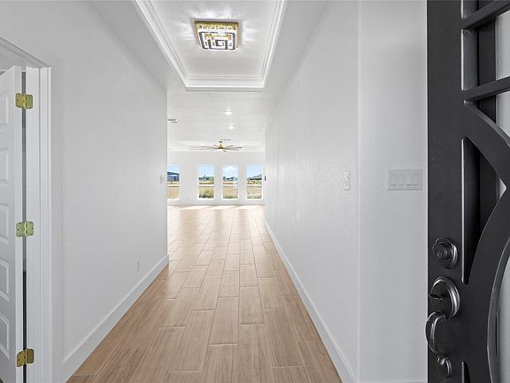 Welcome to this stunning, newly constructed modern farmhouse, boasting exceptional curb appeal with its striking black-and-white contrast, vertical siding, and elegant brick skirting. Step inside through the decorative wrought-iron double doors to discover a bright, open-concept floor plan flowing with stylish decorative lighting. The gourmet kitchen features a large center island with quartz countertops, sleek white cabinetry, a chic gold-toned tile backsplash, and a coveted walk-in pantry for superior storage. The luxurious owner's suite is a true retreat, offering a spa-like master bath with a custom dual-vanity with quartz countertops, a magnificent freestanding soaking tub, a seamless glass walk-in shower, and a private walk-in closet with built-in shelving and hanging space.This home features an additional bedroom with its own private en-suite bathroom, offering extra comfort and convenience beyond the master suite. Attention to detail is evident in every room, including a functional mudroom with a built-in drop zone. With high-end finishes throughout, this move-in-ready property offers a perfect blend of modern style and practical living.